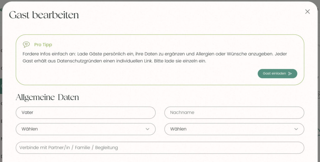 Kein Problem – ihr könnt jederzeit neue Gäste hinzufügen oder bestehende Einträge bearbeiten.