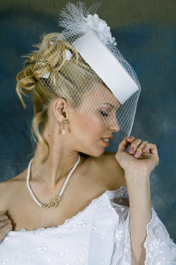 Nimm Dir genügend Zeit für die Auswahl und probiere verschiedene Modelle bei der Brautkleid- oder Anzuganprobe an. Besprich Deine Ideen mit Deinem Friseur oder Deiner Stylistin und testet, wie sich Hut, Schleier oder Fascinator in die Frisur integrieren lassen. Mache ein paar Fotos von den verschiedenen Varianten, um später in Ruhe zu vergleichen. Denke auch an den Gesamtlook: Schmuck, Make-up, Schuhe und Dein Brautstrauß sollten miteinander harmonieren.