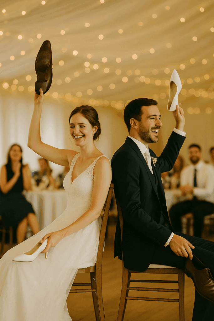 Plant Hochzeitsspiele oder Überraschungen für die Gäste, wie Fotoboxen, Live-Acts oder Feuerwerke.