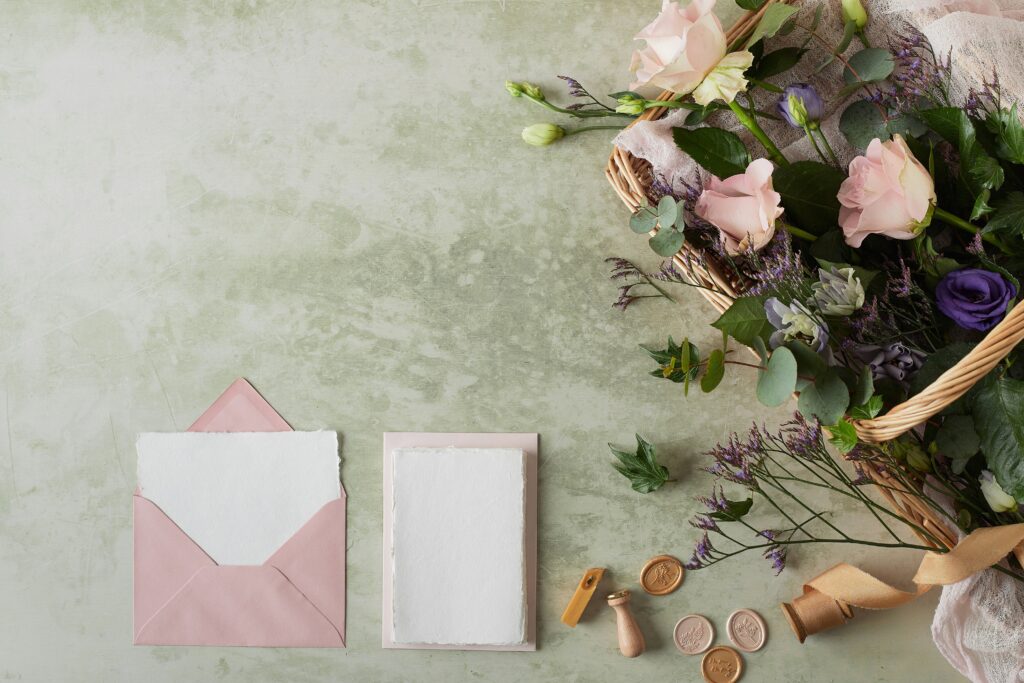 Biologisch abbaubare Materialien: Entscheide dich für Einladungen aus recyceltem Papier oder anderen umweltfreundlichen Materialien.